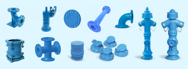 Armature koje nudimo izrađene su iz modularnog lijeva (GGG 40/50), s unutarnjom i vanjskom zaštitom od plavog epoxy premaza (prema EN 545) za pitku vodu ili od emajliranog premaza plavog unutra, a izvana plavog epoxy premaza za radni tlak PN 10, 16, 25 ili 40 bara. Za veće promjere nudimo zavarene izvedbe od čelika.